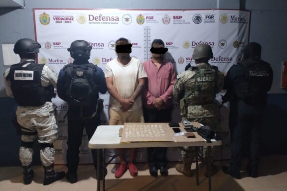 Cosoleacaque,Ver. Ejército Mexicano realizó un operativo conjunto con autoridades locales, en el municipio de Cosoleacaque, Veracruz, dando como resultado la detención de dos persona en posesión de probables sustancias ilícitas dañinas para la salud de la sociedad. Al momento de su detención, los detenidos tenían en su poder: Varias decenas […]