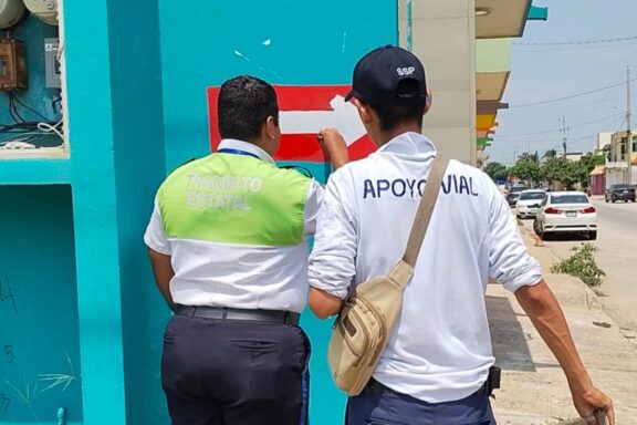 Personal de transito estatal señaliza vialidades en Coatzacoalcos