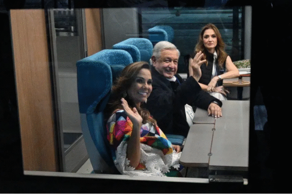Palenque, Chiapas. Este domingo 31 de diciembre de 2023, el presidente Andrés Manuel López Obrador recorrió la ruta de Cancún a Palenque en el Tren Maya, con la que inauguró un nuevo tramo de la megaobra. A las 06:30 horas, el mandatario, acompañado por algunos funcionarios y empresarios como Carlos […]