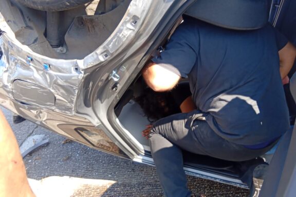 *Choque con volcadura deja cuantiosos daños materiales y una pareja lesionada en la carretera a Las Barrillas*