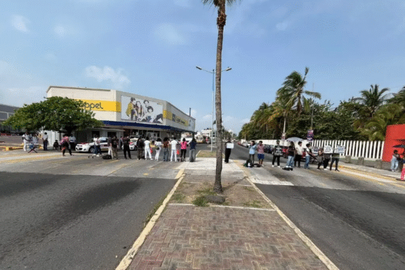 Bloqueo y manifestación de alumnos de la UV en Boca del Río; rechazan nuevo modelo educativo