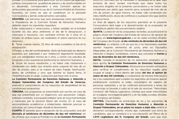 Emite Comisión la convocatoria para designar titular de la CEDH