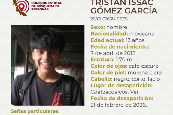 Coatzacoalcos, Veracruz La Comisión Estatal de Búsqueda reportó la desaparición de un menor de 13 años de edad en Coatzacoalcos, al sur del estado de Veracruz. Se trata de Tristán Issac Gómez García, mide 1.70 metros, es de tez morena clara, tiene ojos color café oscuro y el cabello negro, corto y lacio. Como señas particulares, tiene cara […]