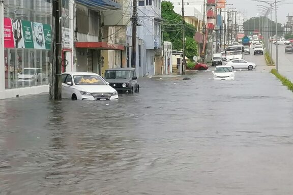 Sorprenden lluvias en Coatza; Quedan automóviles varados por calles inundadas