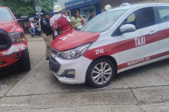 Camioneta contra taxi, deja pasajero lesionado