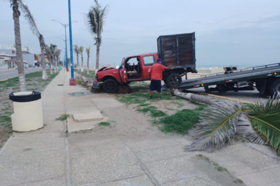 Conductor en estado de ebriedad provoca fuerte choque y aparatosa volcadura en el malecón de Coatza