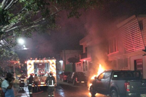 Se incendió camioneta frente a kinder de la Ávila Camacho