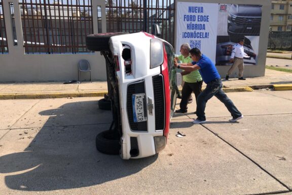 Vuelca taxi en el centro de Coatzacoalcos