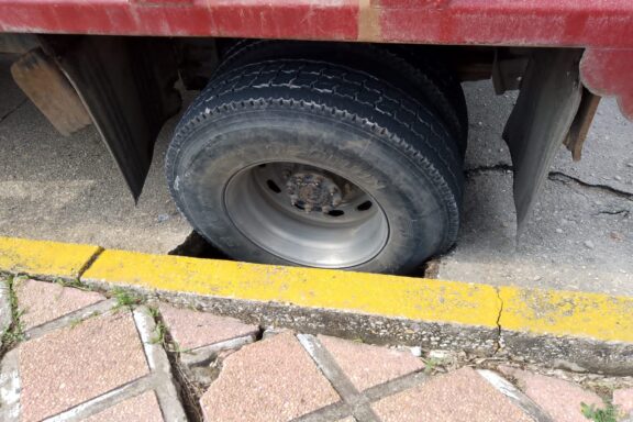 Gregorio Antonio/ Coatzacoalcos, Ver. Un camión de volteo, cayó a un socavón que se formó en pleno centro de la ciudad, por lo que el operador de la pesada unidad que trasladaba escombro que están retirado de la escuela Artículo 123 que están demoliendo, sufrió retraso en el traslado del […]