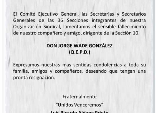 Fallece Don Jorge Wade González, líder de los petroleros de Minatitlán