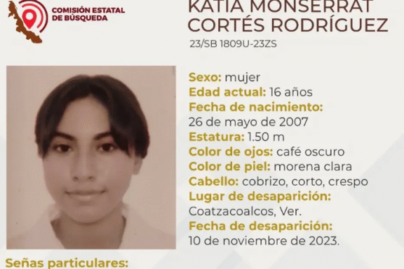 Coatzacoalcos, Veracruz. La Comisión Estatal de Búsqueda reportó la desaparición de una menor de 16 años de edad en Coatzacoalcos, Veracruz. Se trata de Katia Monserrat Cortés Rodríguez, es de tez morena clara, tiene ojos color café oscuro y cabello cobrizo, corto y crespo. Como señas particulares, tiene tatuaje en el pecho, […]