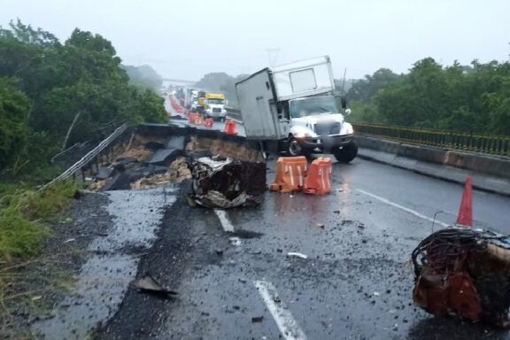 Fue cerrada la autopista Nuevo Teapa-Cosoleacaque, en Veracruz por un enorme socavón. En redes sociales la Guardia Nacional división carreteras, detalla que el cierre se registra a la altura del kilómetro km 008+800 con dirección a Acayucan. Ante esta situación, se recomienda tomar precauciones y atender la indicación vial.