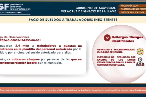 José Vargas. Sur de Veracruz.- La Auditoría Superior de la Federación (ASF) documentó presuntas irregularidades en el manejo de recursos federales en los municipios de Acayucan y Cosoleacaque, Veracruz, como parte de la Tercera y última entrega de la Fiscalización de la Cuenta Pública 2024. Las observaciones podrían derivar en […]