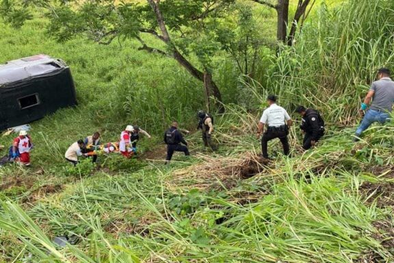 Autobús de pasajeros termina en un barranco; 15 pasajeros resultaron lesionados