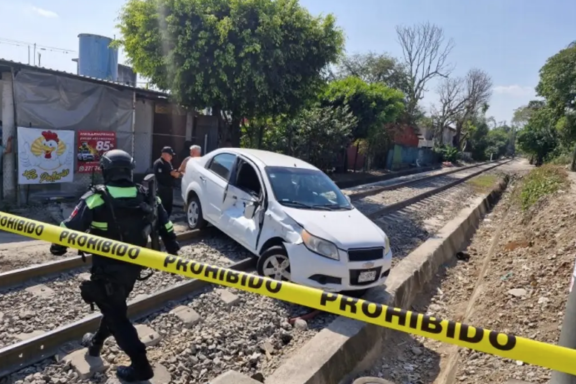 Tren arrastra varios metros a carro en Córdoba, Veracruz; hay 3 lesionados