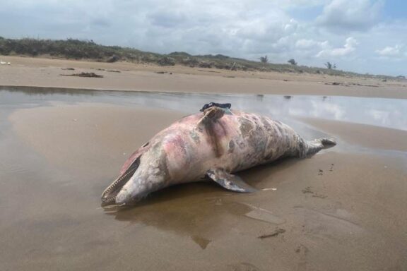 Aparece otro delfín muerto en costas del sur de Veracruz; investigan posibles causas.