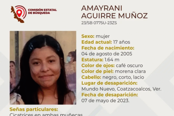 Coatzacoalcos, Ver. REDACCIÓN La Comisión Estatal de Búsqueda reportó la desaparición de una menor de 17 años de edad en Coatzacoalcos, Veracruz. Se trata de Amayrani Aguirre Muñoz, mide 1.64 metros, es de tez morena clara, tiene los ojos color café oscuro y el cabello negro, corto y lacio. Como señas […]