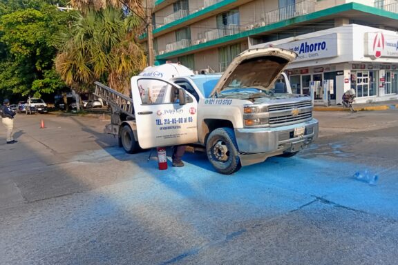 Casi se incendia pipa de gas, en pleno centro de Coatza