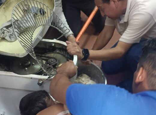 A punto de ocurrir tragedia en Minatitlán: niño queda atrapado en máquina de masa