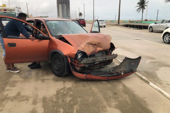Cuatro lesionados y cuantiosos daños en aparatoso choque en el Malecón de Coatza