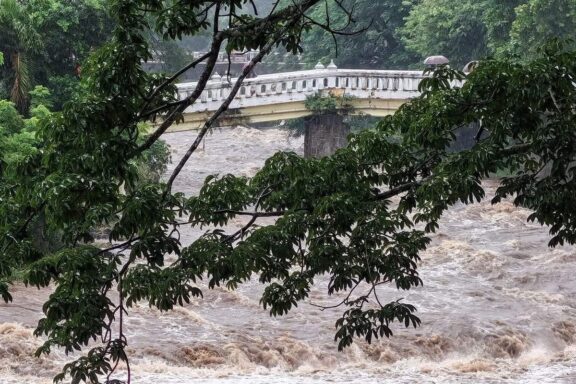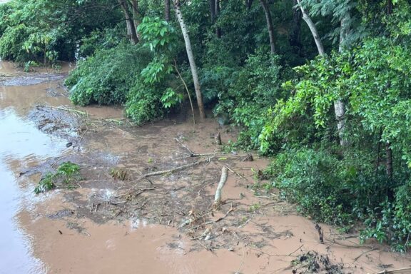 Ríos desbordándose en Hueyapan tras paso de la Onda Tropical 20; Protección Civil activa recorridos preventivos