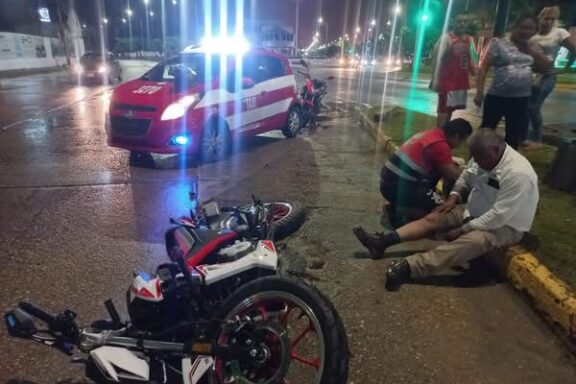 Durante tormenta eléctrica en Minatitlán, motociclista resulta herido tras aparatoso choque