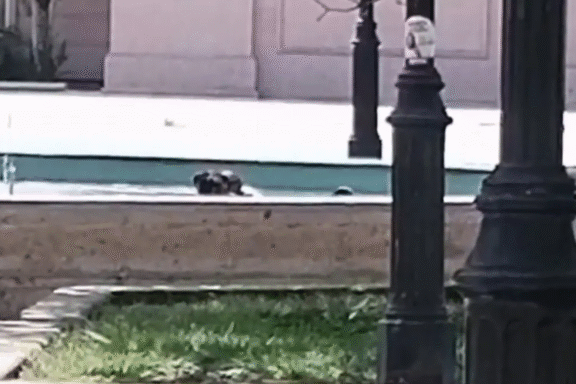 Ante ola de calor, pareja se mete a fuente y tienen relaciones