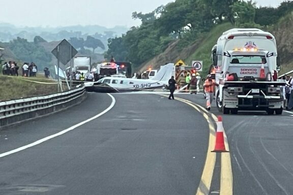 Avioneta aterriza sobre autopista de Veracruz, este domingo