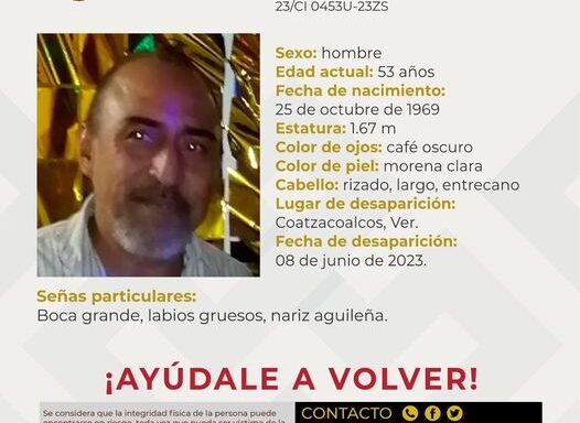 Coatzacoalcos, Ver. REDACCIÓN La Comisión Estatal de Búsqueda reportó la desaparición de un hombre de 53 años de edad en Coatzacoalcos, Veracruz. Se trata de Héctor Reynoso Martínez, quien mide 1.67 metros, es de tez morena clara, tiene ojos color café oscuro y cabello rizado, largo y entrecano. Como señas particulares tiene […]
