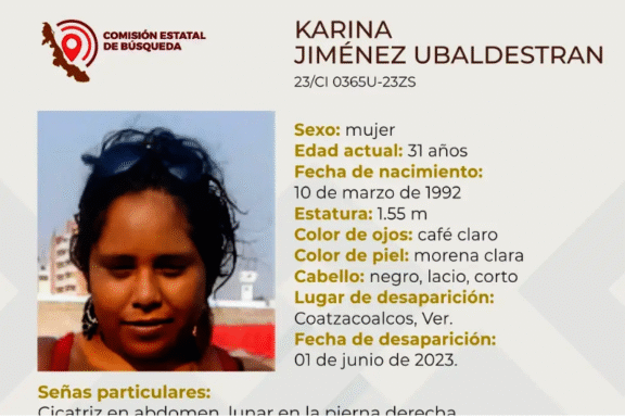 Coatzacoalcos, Veracruz. REDACCIÓN La Comisión Estatal de Búsqueda reportó la desaparición de una joven mujer de 31 años de edad en Coatzacoalcos, Veracruz. Se trata de Karina Jiménez Ubaldestran, mide 1.55 metros, es de tez morena clara, tiene los ojos color café claro y el cabello negro, lacio y corto. Como señas […]