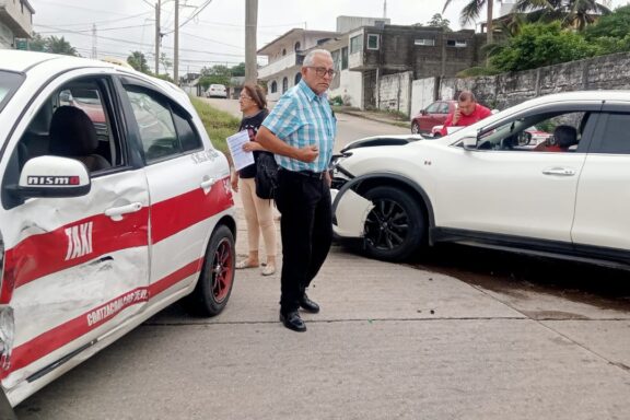 Camioneta impactó taxi en la Benito Juárez en Coatzacoalcos