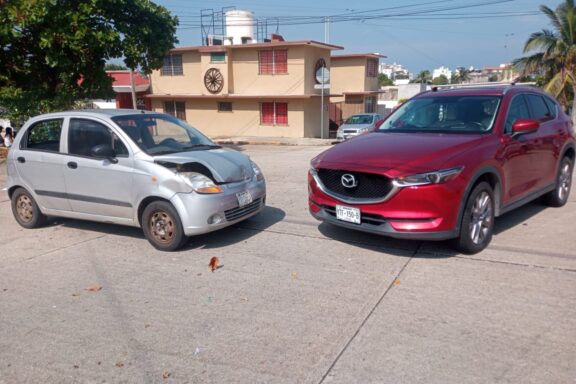 Mazda contra Matiz, deja cuantiosos daños en la colonia Benito Juárez Norte de Coatzacoalcos