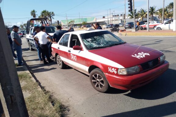 Taxi derriba a motociclista en Coatzacoalcos