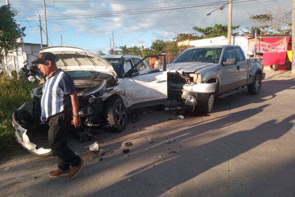 Fuerte accidente entre dos camionetas en la Popular Morelos de Coatzacoalcos; un lesionado