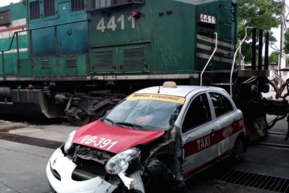 Tren se lleva a taxi en Veracruz