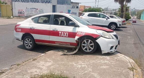 Conductor se da a la fuga tras chocar a un taxi en Coatzacoalcos; dejó a una persona lesionada