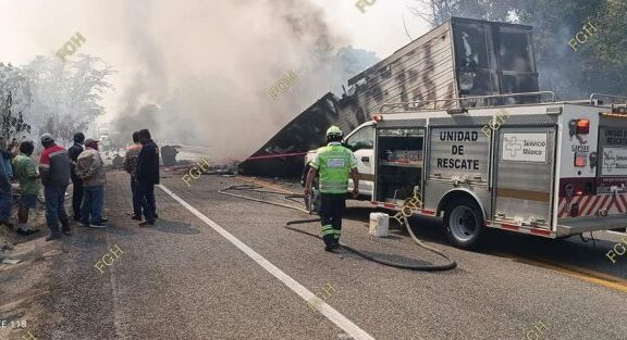 4 cuerpos calcinados en fuerte choque de tráilers en la carretera Las Choapas-Raudales