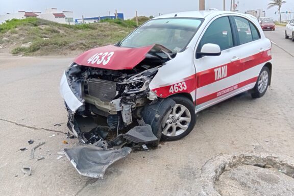 José Vargas. Cosoleacaque, Ver.– Durante la madrugada de este domingo se registró un aparatoso accidente sobre la carretera Transístmica, a la altura del municipio de Cosoleacaque, donde un taxi terminó impactándose contra un poste de alumbrado público y posteriormente volcó, generando una rápida movilización de los cuerpos de emergencia. La […]
