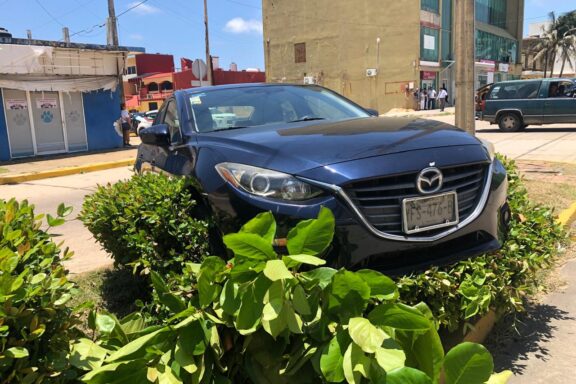 quedó sobre el camellón; fuerte accidente en pleno centro de Coatza