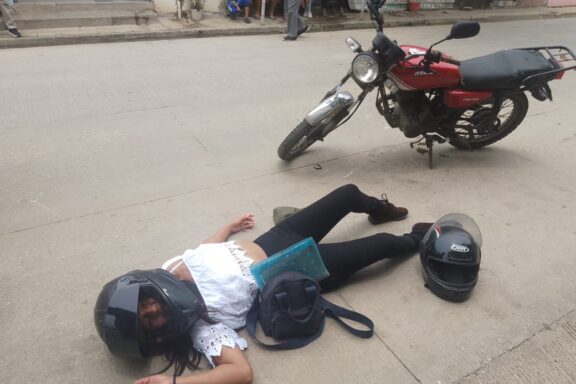 Fuerte accidente en Lomas de Barrillas; motociclistas son arrollados por particular, la mujer estaá gravemente lesionada