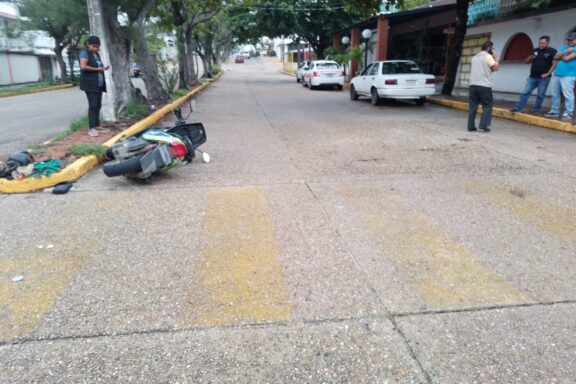Taxi ARROLLA a motociclista en pleno centro de Coatzacoalcos
