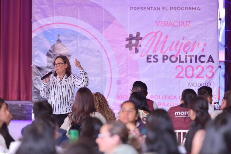 “Estamos hablando de violencia política si, muchos compañeros, muchos, dentro de su cultura todavía no asimilan este boomerang que estamos generando y su reacción primaria es el ataque pero nosotros no atacamos, yo soy ingeniera y muchas que están aquí aunque no lo crean nosotras somos constructoras, construimos puentes de comunicación, puentes sociales, construimos diálogos, si hay un conflicto en nuestra casa en nuestro hogar nosotras somos intermediarias, eso hacemos las mujeres, entonces este tipo de talleres que trae nuestro movimiento, nuestro partido aquí a Veracruz es de lo mejor, eso no se debe de escatimar, eso tenemos que replicarlo en los 212 municipios, en los 212 municipios
