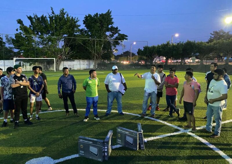 A través del programa Trabajando Juntos, se hizo la entrega de cuatro reflectores que mantendrán una mejor iluminación, en el campo sintético de fútbol al que acuden los diferentes equipos para sus torneos.