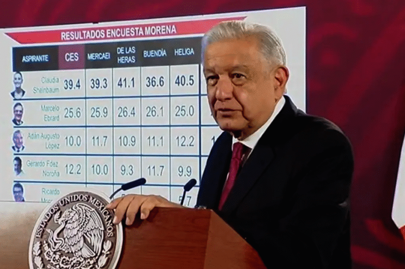«Por eso se eligió a quien voy yo a entregar la dirección del proyecto de 4T (…) Este es el resultado, asi quedaron y Claudia Sheinbaum, en las cinco encuestas sale con más aceptación», afirmó.