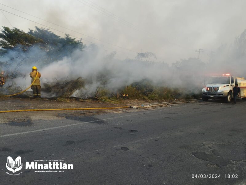 La Dirección de Protección Civil y Bomberos de Minatitlán respondieron a un reporte de incendio de pastizal ubicado a un costado del Panteón Tacoteno. Las unidades acudieron rápidamente al lugar para atender la emergencia.
