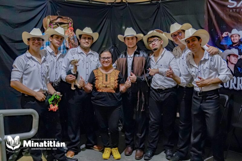 Durante la noche, la Presidenta Municipal de Minatitlán, Dra. Carmen Medel Palma tuvo el honor de brindarles la tradicional “patadita de la suerte”, deseándoles el mayor de los éxitos en su carrera artística. “#Minatitlán está de moda, con talento en la música norteña. ¡Crean en ustedes!”, expresó al dirigirse al grupo, reconociendo su esfuerzo y pasión por la música regional.