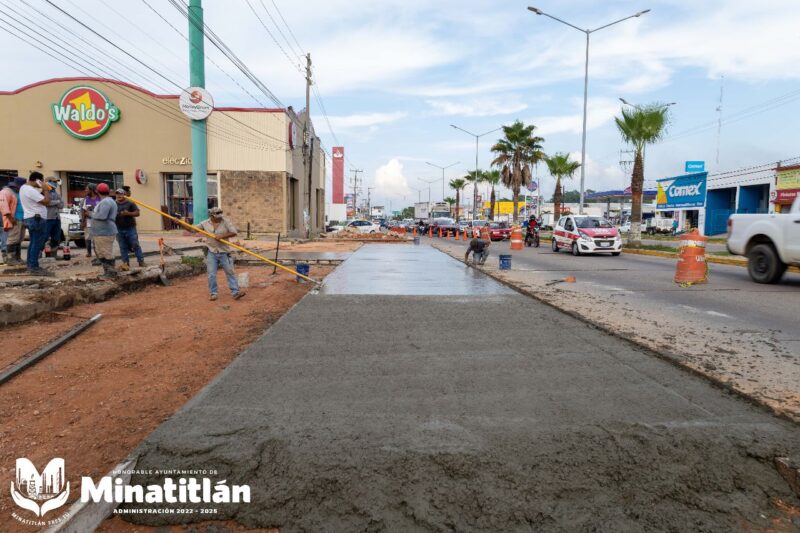 Minatitlán, Ver.- Como parte de los trabajos de rehabilitación que se llevan a cabo sobre el boulevard Institutos Tecnológicos, a la altura de la avenida Berlín, en la colonia Nueva Mina, se realizó la primera etapa de vaciado de concreto en un área de 23 metros cúbicos.