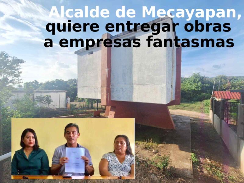 Toda una red de corrupción esta saliendo a flote en el Municipio de Mecayapan, ya que el alcalde, Antonio Cervantes Vargas, quiere dar unas de sus últimas obras de su administración a empresas fantasmas.