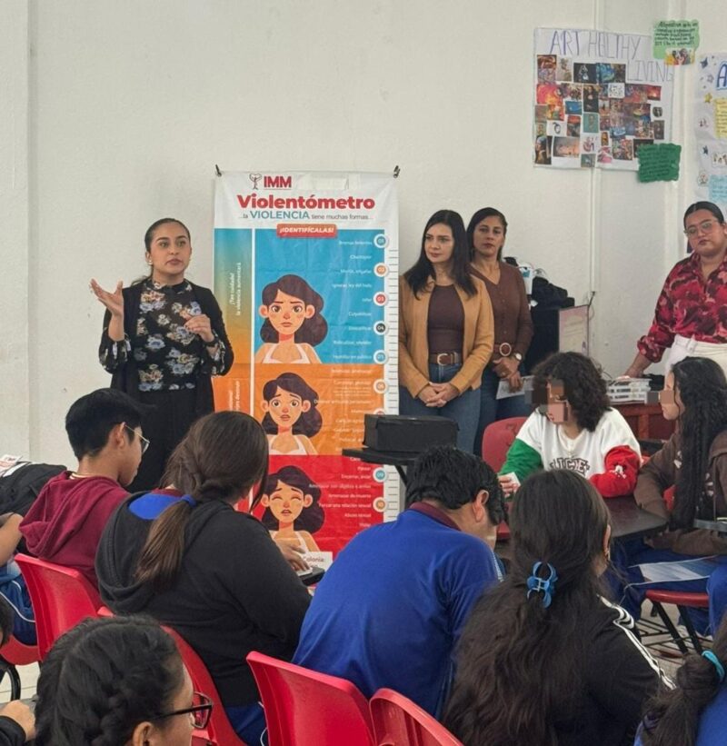 Durante las pláticas, se distribuyeron trípticos informativos y, mediante presentaciones audiovisuales, especialistas del IMM explicaron las distintas formas de violencia, utilizando herramientas como el Violentómetro para identificar y medir la gravedad de las agresiones.