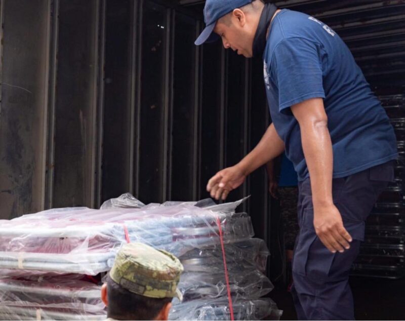 Fueron cuatro las unidades que llegaron al municipio, donde a través del plan de contingencia se iniciará con la entrega de despensas, catres, cobertores, colchonetas, teniendo como prioridad colonias con mayores afectaciones.